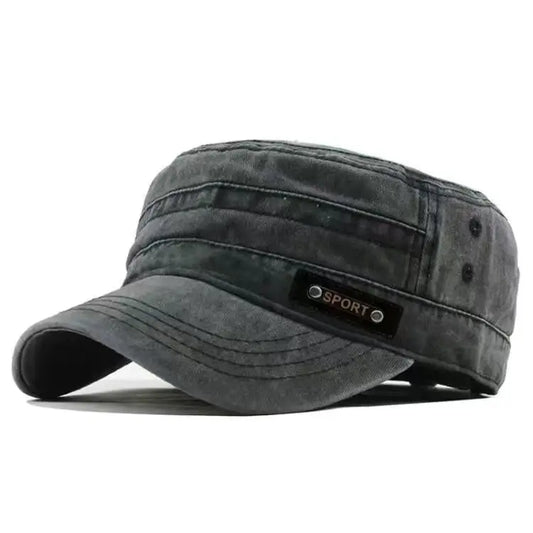 Spring Summer And Autumn Mens New Washable Cotton Flat Top Sun Proof Military Cap